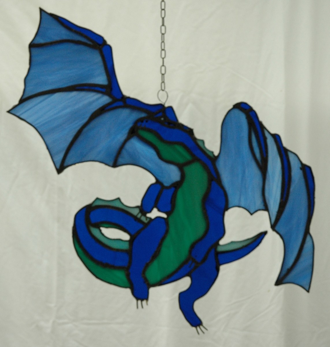 Dragon -Bert a small but agile dragon with a wing span of 15 inches & a height of 10.5 “ in blues and purples. Can be made to order in whatever colour you’d like.