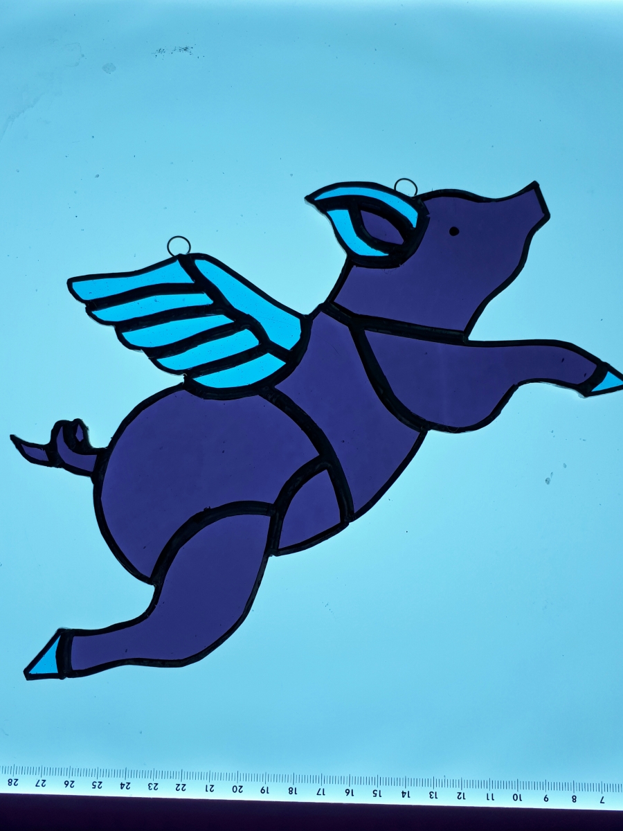 Flying Pig – everyone needs a flying pig! This one has a purple body with blue wings but can be made to order in whatever colour you’d like. Max dims H10.5 x W6.5 inches.