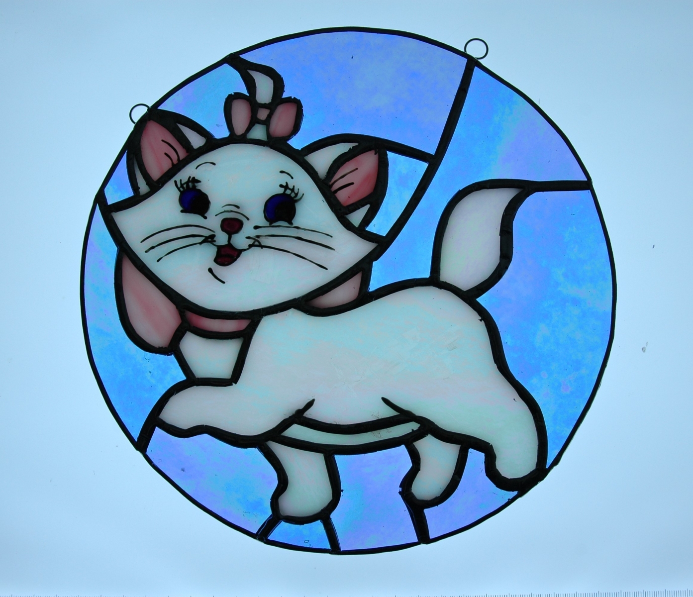Disney – Marie cat from the Aristocats in an iridescent blue surround, 9inches diameter, made to order.