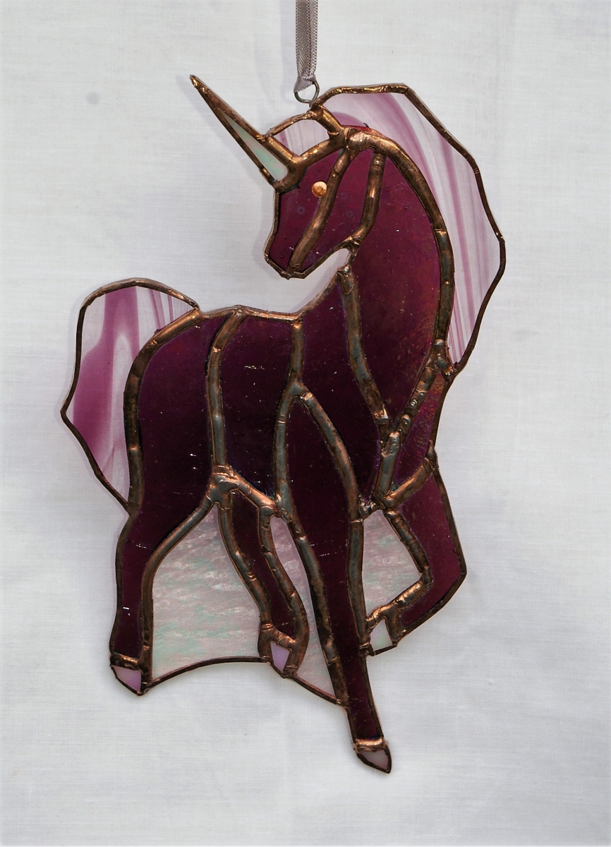 Unicorn with a stripey (baroque) mane and tail max dims H10” x 4.5 Inches. Other colours to order.